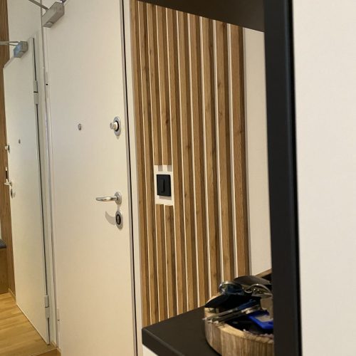 Naši akustični leseni paneli so že na Bledu in izgledajo odlično. Popolnoma se ujema z barvo lesenega pohištva IKEA “White Stained Oak”.