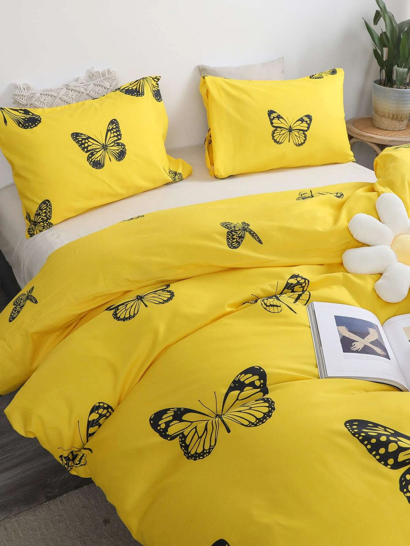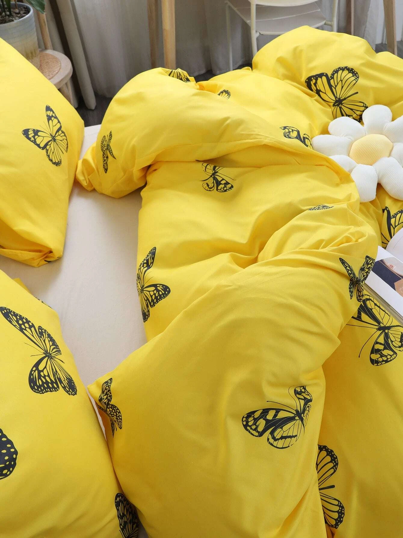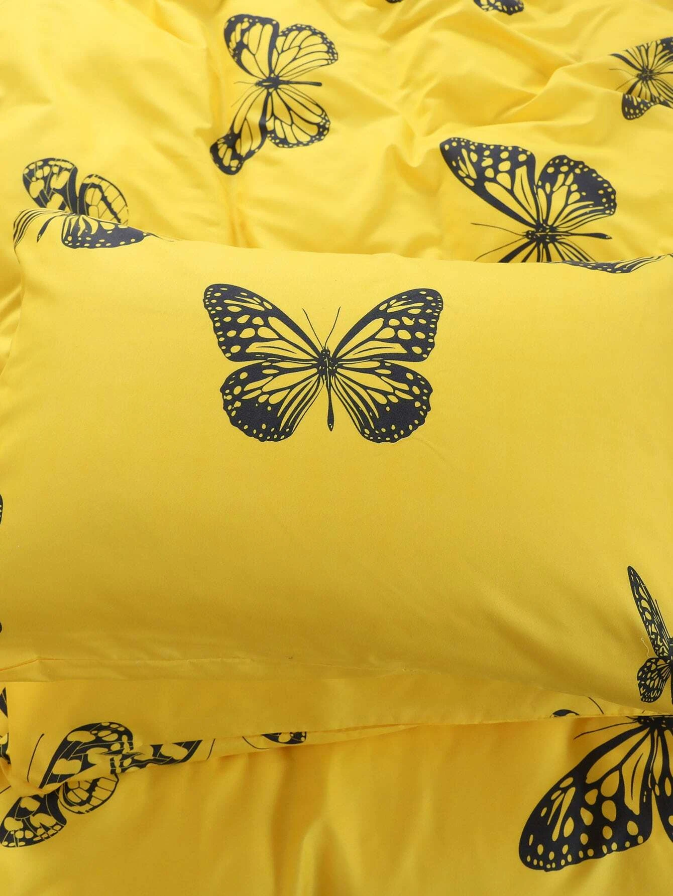 Posteljnina 140x200, BUTTERFLY, 3 delna, rumena z metulji, je izdelana iz kakovostnega bombažnega satena in bo zagotovila udobno spanje v vaši spalnici. Ta lepa in elegantna posteljnina v rumeni barvi z metulji, bo vašo spalnico oživila s svojim privlačnim dizajnom. Komplet vsebuje tri dele - prevleko za odejo, rjuho in vzglavnik.