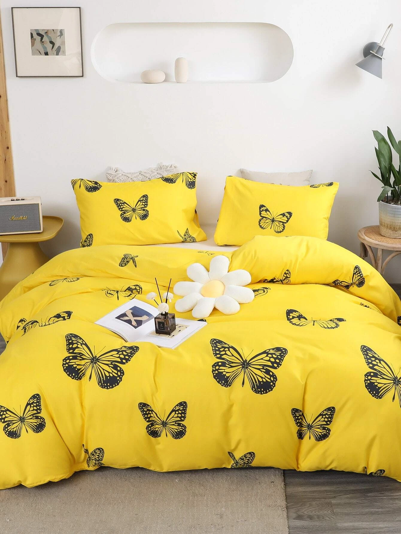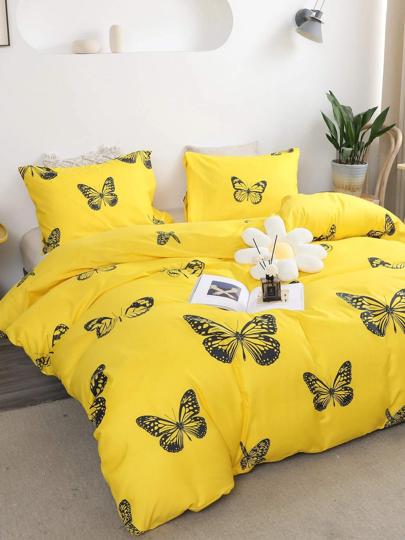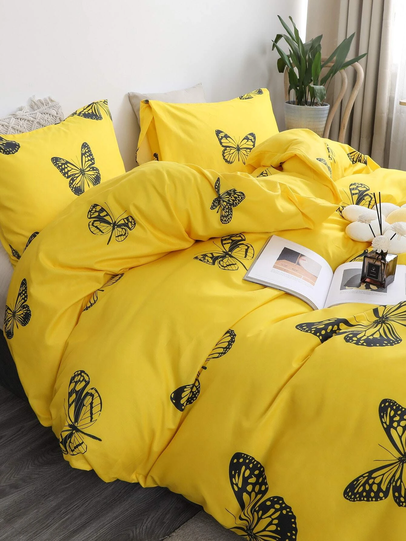 Posteljnina 140x200, BUTTERFLY, 3 delna, rumena z metulji, je izdelana iz kakovostnega bombažnega satena in bo zagotovila udobno spanje v vaši spalnici. Ta lepa in elegantna posteljnina v rumeni barvi z metulji, bo vašo spalnico oživila s svojim privlačnim dizajnom. Komplet vsebuje tri dele - prevleko za odejo, rjuho in vzglavnik.