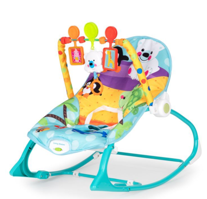 Zahvaljujoč ustrezni konstrukciji gugalnice lahko opravlja kar 3 funkcije - gugalnik / gugalnik / fotelj. Funkcijo je mogoče spremeniti z nastavljivim hrbtnim naslonom in posebnimi drsniki, ki preprečujejo zibanje. V sprednjem delu odbijača je multimedijska plošča, ki skrbi za umirjanje tresljajev. Za varnost malčka skrbijo mehki 3-točkovni varnostni pasovi. Prevleka odbijača je ohranjena v pisanem motivu, ki je prijeten na pogled, lahko se sname in opere. V kompletu so tri viseče igrače, ki pozitivno vplivajo na razvoj otroka. Poleg tega beli medved igra melodije.