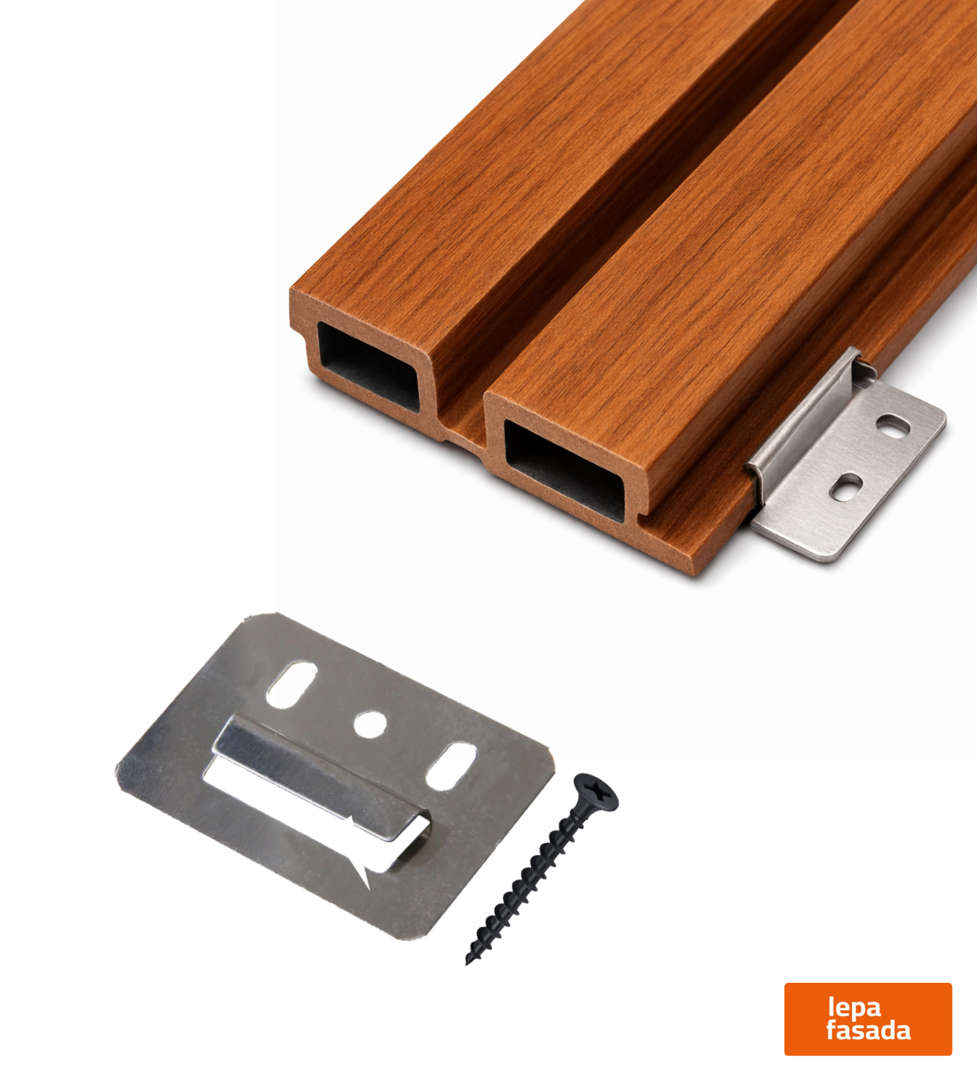 Kovinske sponke za WPC fasadne panele (20 kos) + vijaki